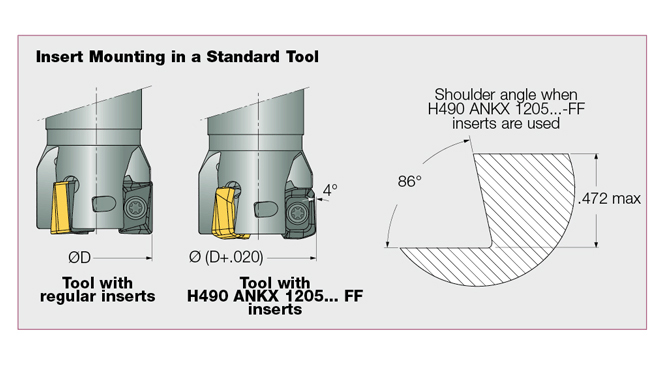 Remarks | The cutting diameter of the tool is .004 larger than the nominal diameter when using this insert At D.O.C. larger than APMX, regular insert feed should be applied Enables ramping down at 1° maximum on 5/8 to 1.5 tool diameters |
