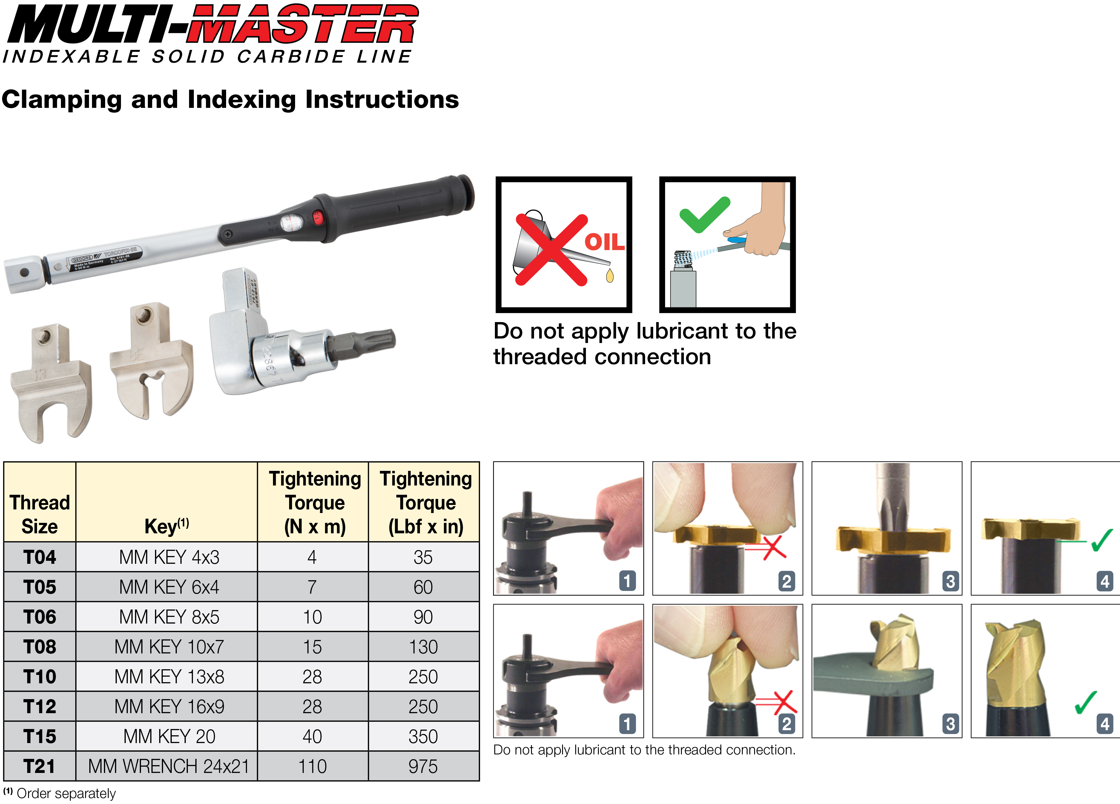| Remarks | Do not apply lubricant to the MULTI-MASTER threaded connection For tightening torque click on More Info |